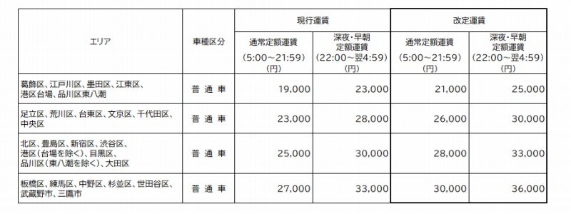 東洋交通株式会社 羽田空港定額運賃改定 新旧対照表