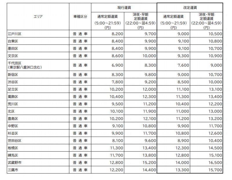 このたび2026年3月19日付で関東運輸局長より、特別区・武三交通圏(東京都23区、武蔵野市、三鷹市)における一般乗用旅客自動車運送事業(タクシー)の新たな公定幅運賃が公示されました。